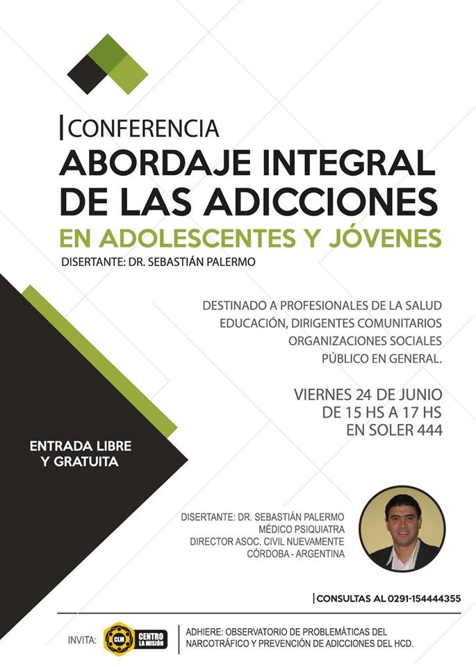 Conferencia: Abordaje integral de las adicciones en adolescentes y jóvenes Region Sanitaria 1Publicado de Valeria en Jornada · Viernes 10 Jun 2016