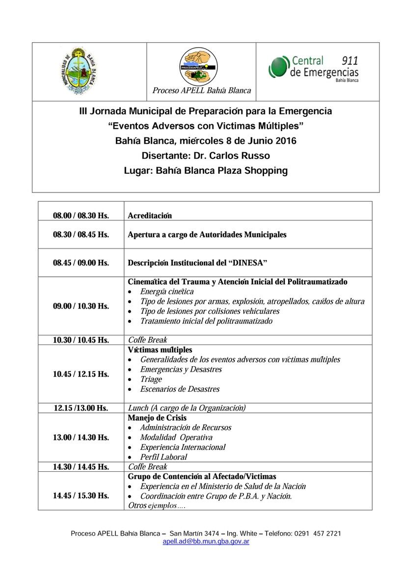 III Jornada Municipal de Preparación para la Emergencia “Eventos Adversos con Victimas Múltiples” Region Sanitaria 1Publicado de Valeria en Jornada · Jueves 12 May 2016